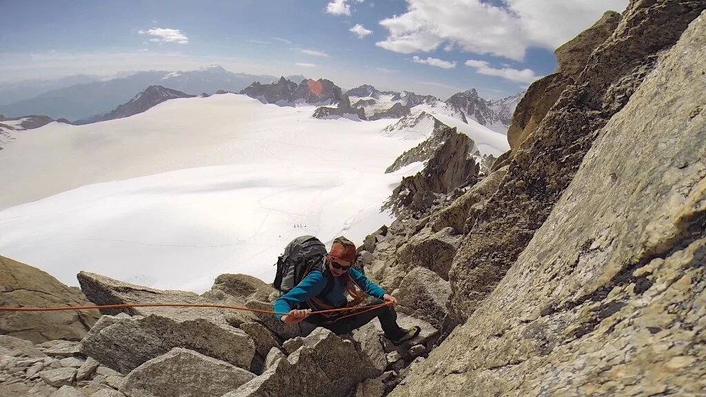 The rocks to the summit involved solid, easy climbing with nice exposure all around. What a great mountain! From the top we had a truly incredible view of the Mont Blanc massive, which was now starting to gather some cloud together to throw at us later on.