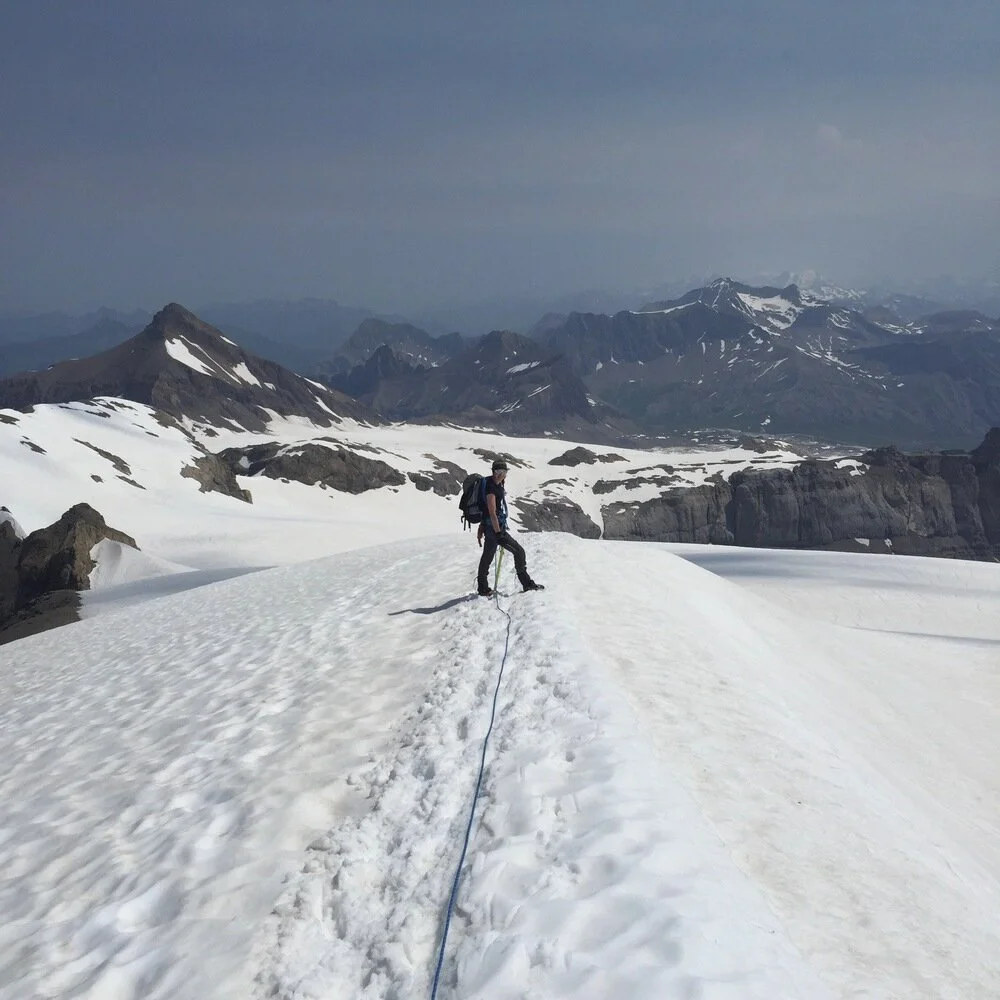 From Le Dôme there was a fixed rope to get us onto the Glacier de Tsanfleuron, and from then on it was glacier travel - our first for the summer mountain season. We tied in and set off for the very easy push to the summit.